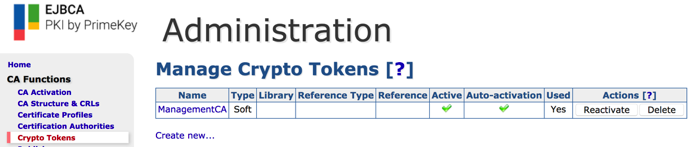 NOTE If you have already performed these steps before creating the keys with the clientToolBox, restart EJBCA using the command service wildfly restart.