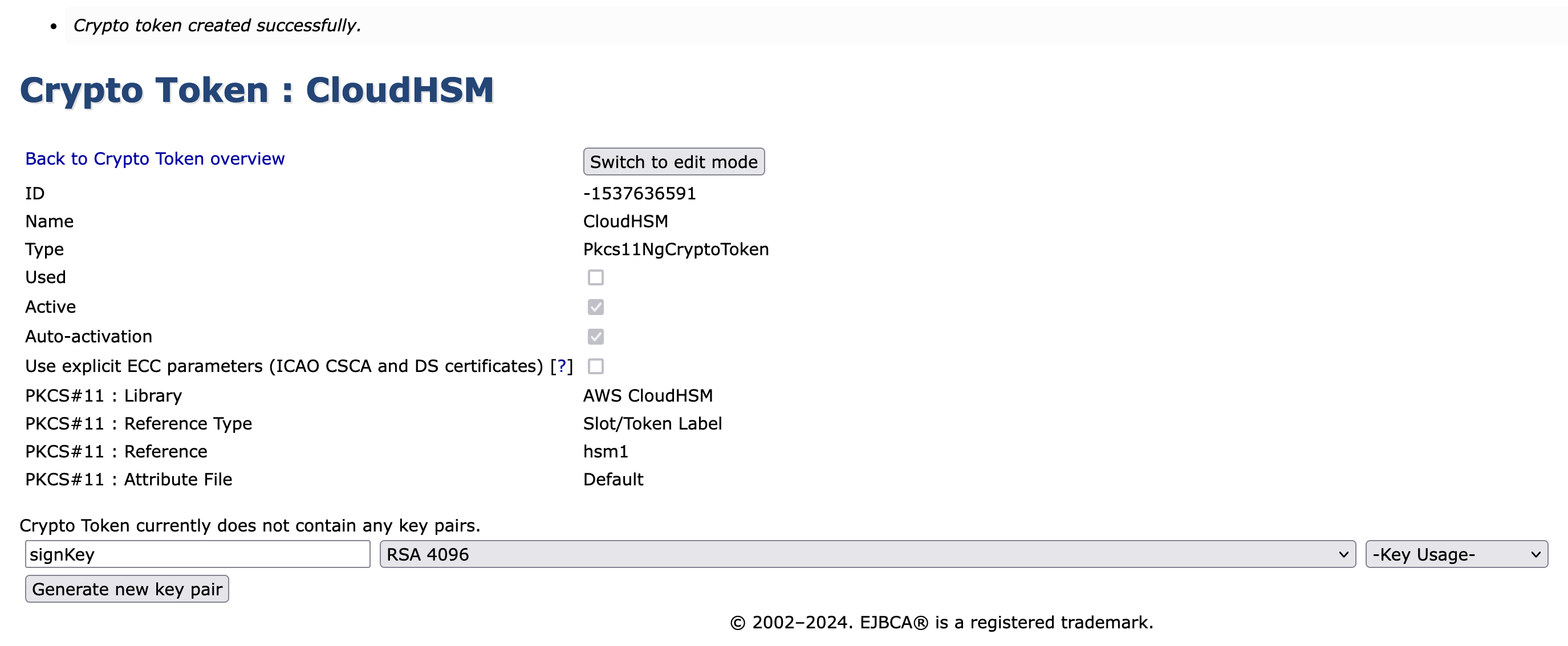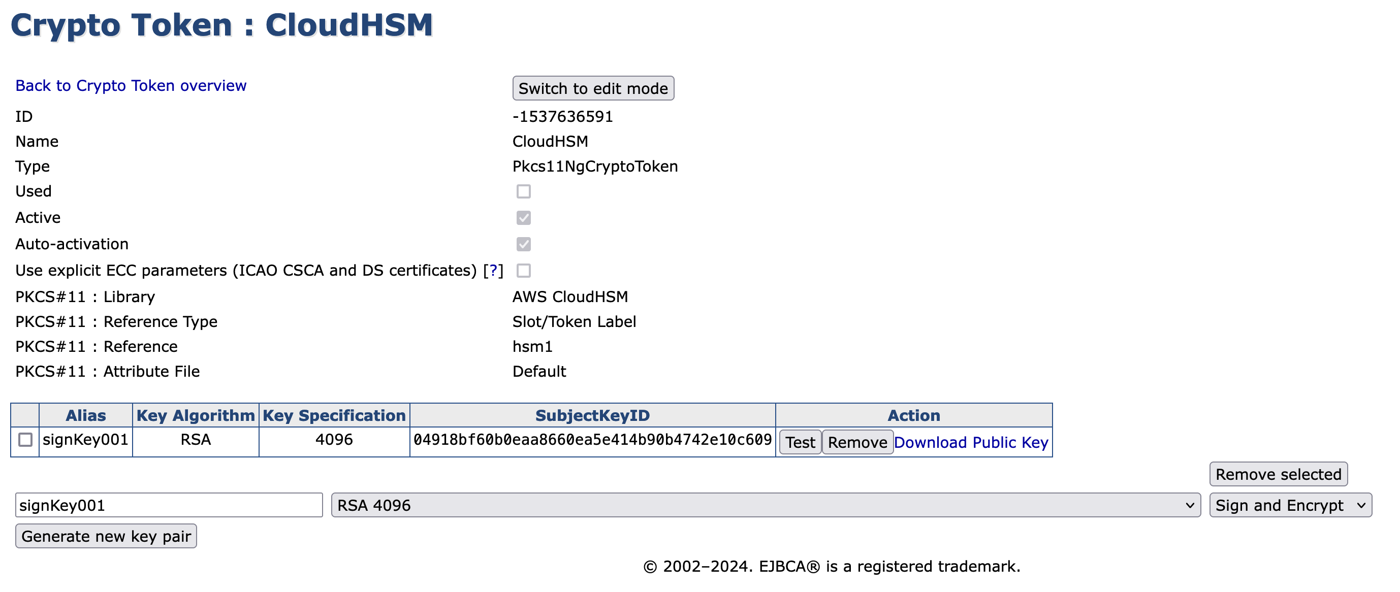 For EJBCA 7.5 and above with SDK5:Name: <anything> (For example "CloudHSM Root Slot")