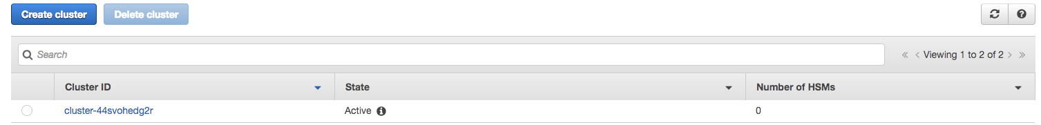 - Click on CloudHSM in the Services section of the AWS Console and find the existing cluster for the HSM you want to restore. AWS CloudHSM is only billing if there is an HSM in the active cluster.