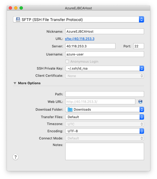 - Specify details to connect to your instance, for example hostname, username, and SSH key: