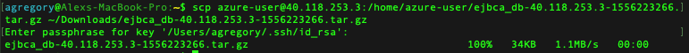 # scp azure-user@40.118.253.3:/home/azure-user/ejbca_db-40.118.253.3-1556223266.tar.gz ~/Downloads/ejbca_db-40.118.253.3-1556223266.tar.gz