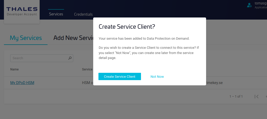 - To create a new service for HSM on Demand, click Try Service to start the wizard.
