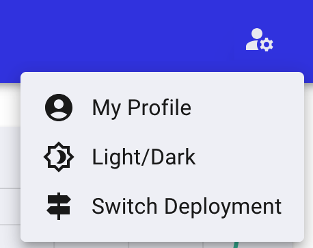 Within this menu you will be able to view Profile details, switch between light and dark mode, and also Switch Deployments.
