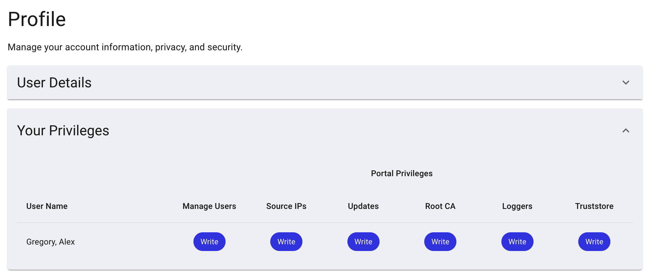 Viewing profile details will allow you to see the permissions you have within this specific deployment. To gain access to additional features, you will need to contact your organization administrator.