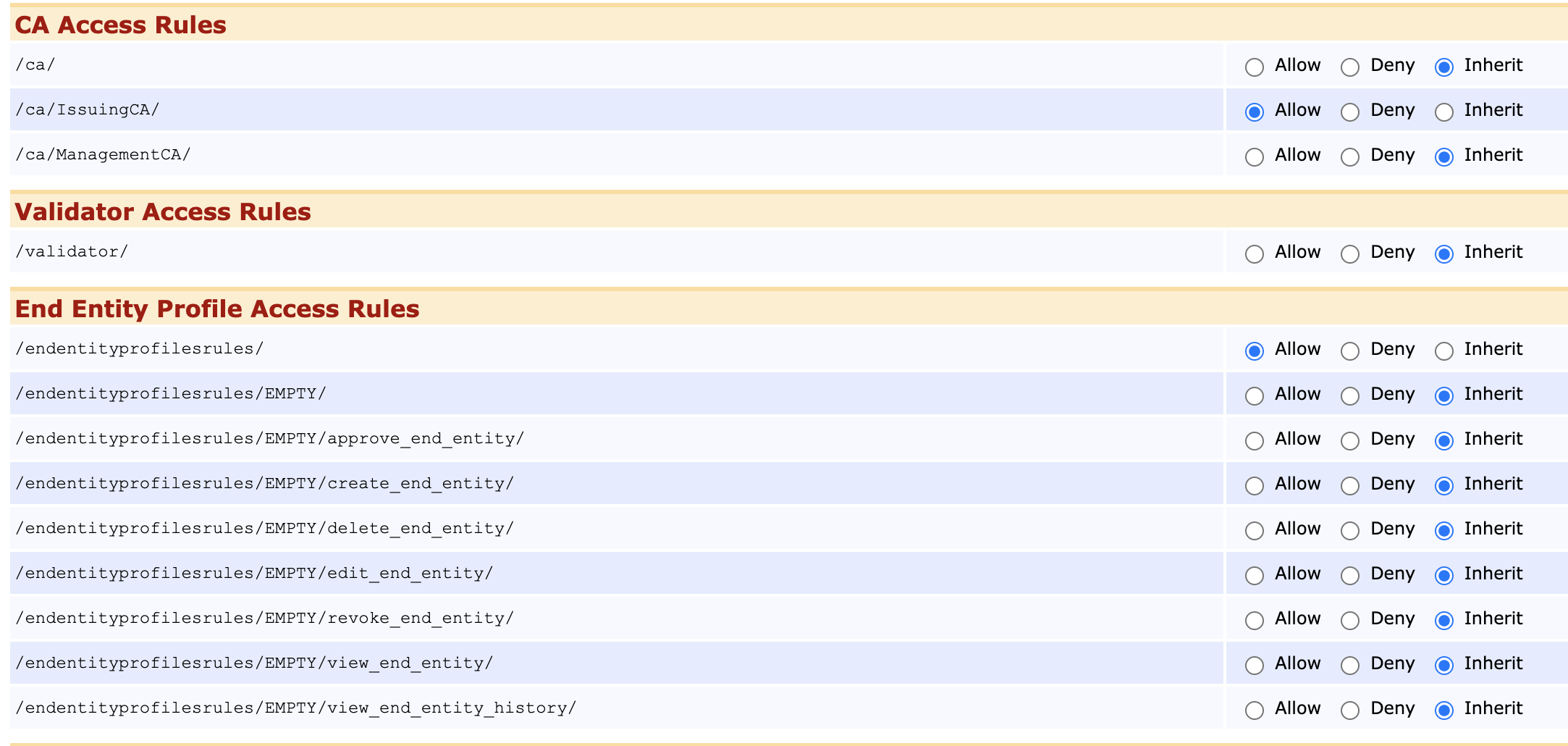 - Access to the CAs and End Entity Profiles that you wish to be publicly accessible. For more details, see RA Administrator Access Rules.