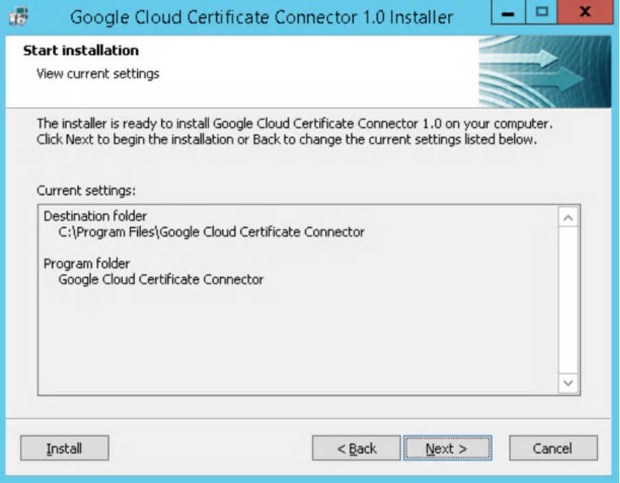 To install the Google Cloud Certificate Connector, perform the following steps: