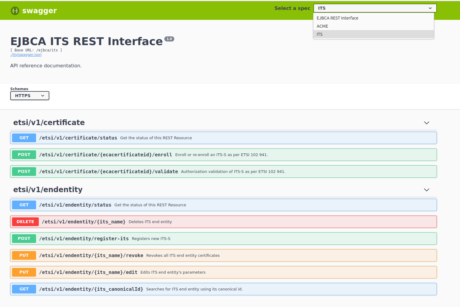 - Authorization validation: https://localhost:8443/ejbca/its/etsi/v1/certificate/{ecaCertificateId}/validate