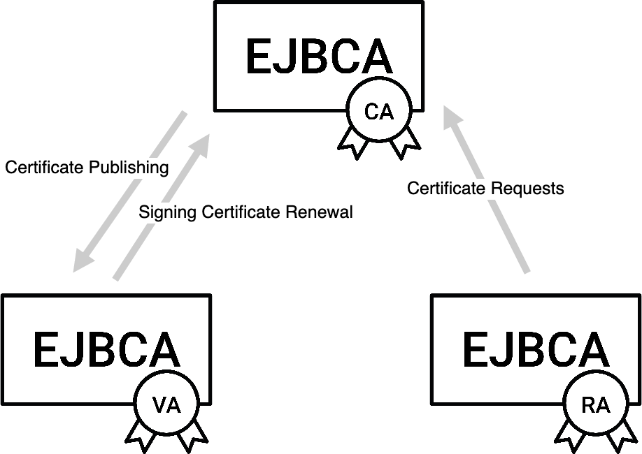 In the following, the terms CA, VA or RA refer to separate EJBCA instances acting in those specific roles.