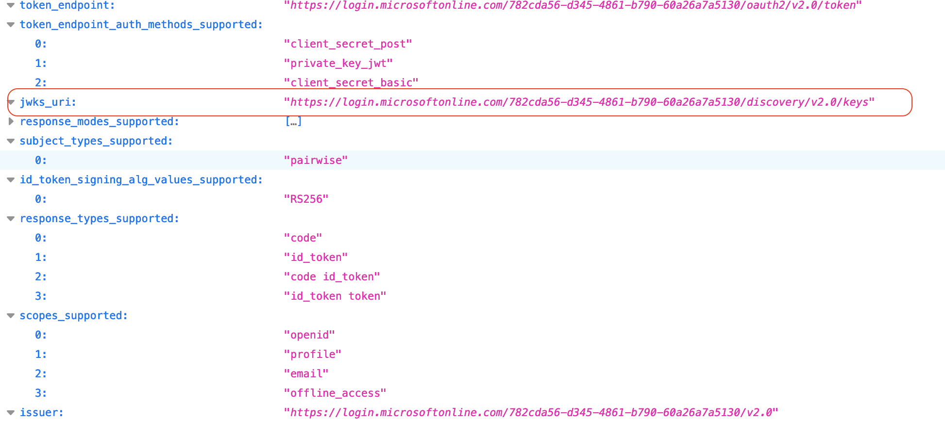Copy the URL denoted by jwks_uri.