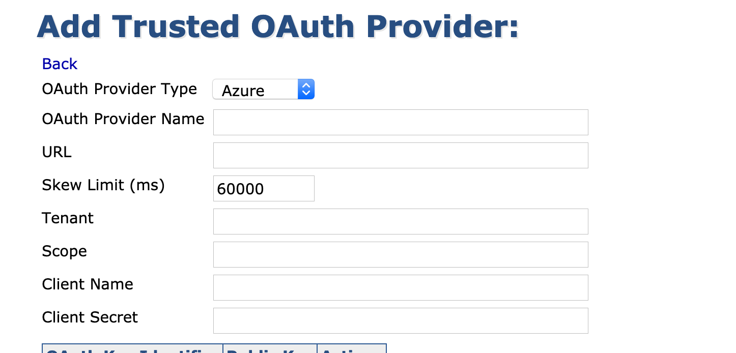 Select the OAuth Provider Type=Azure.