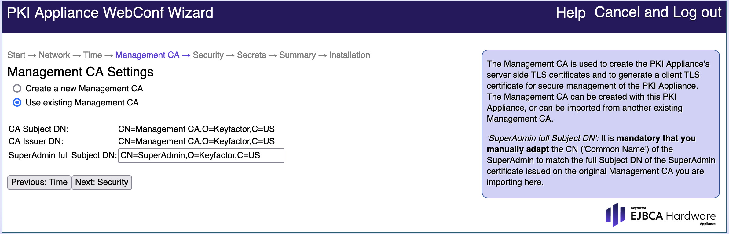 Step 3: Installing Hardware Appliance with Existing Management CA