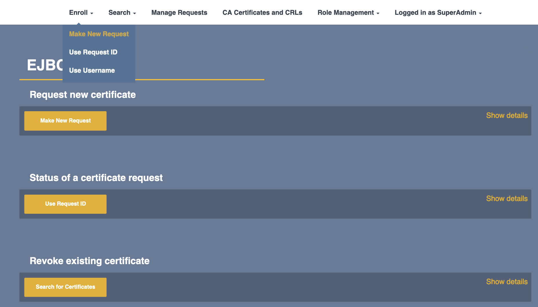 - Open EJBCA RA Web.