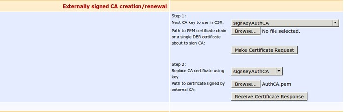 In the section Externally signed CA creation/renewal click Browse... and upload the RootCA.pem file.