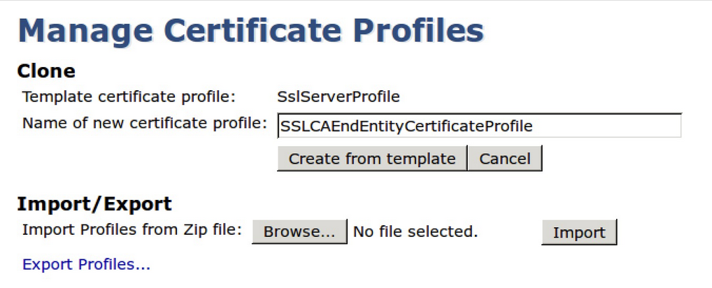 This section describes the creation of the certificate profile for the end entities that will use SSLCA. For that purpose you will clone a template.