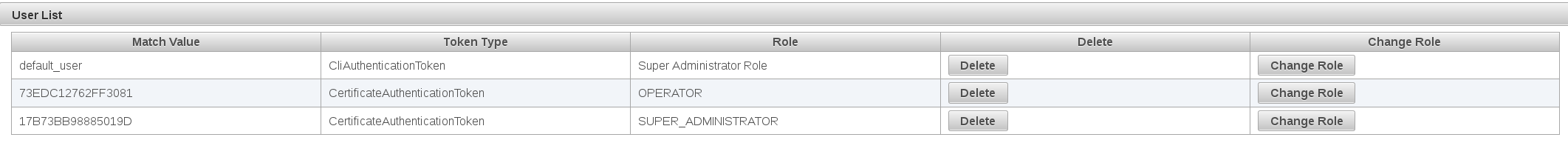 - Token Type: The kind of token used to identify the administrator. For all administrators, accept the Command Line Interface (functionality not available) administrator, the token type is CertificateAuthenticationToken.