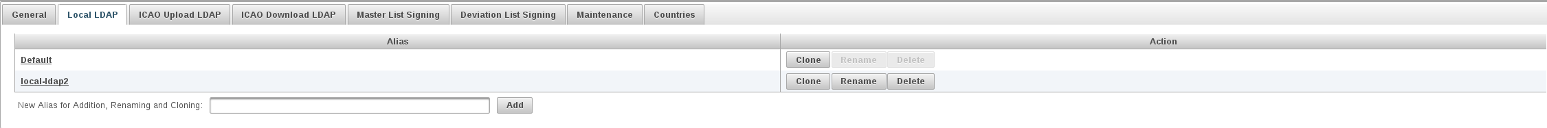 - Add: To add a new Local LDAP alias, enter the new alias in the field New Alias for Addition, Renaming and Cloning and click Add. The new alias is added to the list of aliases.