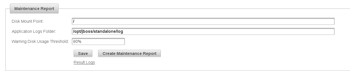 - Application Logs Folder: The folder where the application server logs are saved. Used only for monitoring the log folder size, as it has a tendency to substantially grow in size.