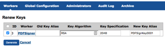 The following steps create a PDF Signer that allows key and certificate renewal over the peer connection. This saves from having to pass around CSRs from SignServer to EJBCA when doing certificate renewals.