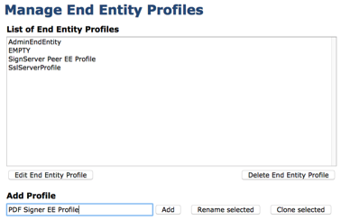 6. Select the PDF Signer EE Profile and click Edit End Entity Profile.