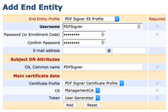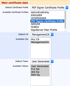 • Available Certificate Profiles: PDF Signer Certificate Profile