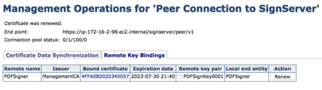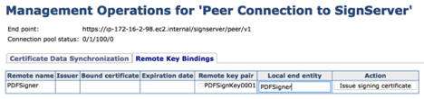 4. Click Manage on the Peer Connection to SignServer and select the Remote Key Bindings tab.