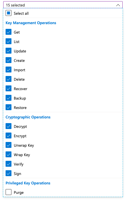 Select all of the permissions under Cryptographic Operations.