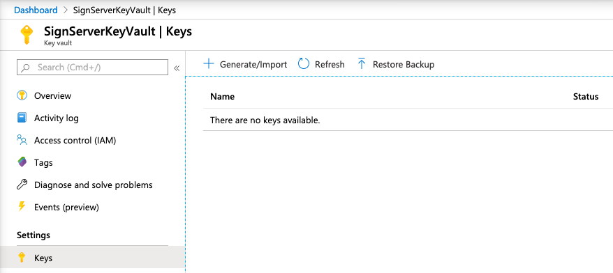 Viewing Keys in Key Vault