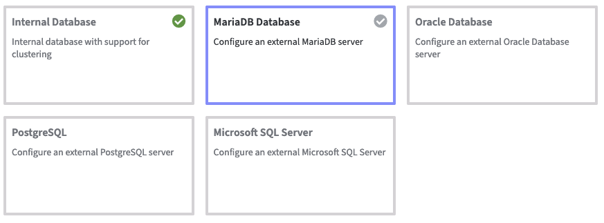- Database IP Address / FQDN (required): Enter the IP address or the FQDN (Fully Qualified Domain Name) of the external MariaDB database.
