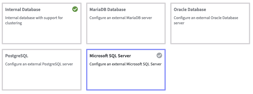 Click the second tile in the bottom row Microsoft SQL Server under the Application Settings in the Database Selection.