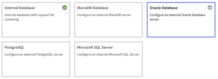 After choosing your external database, complete the required information.