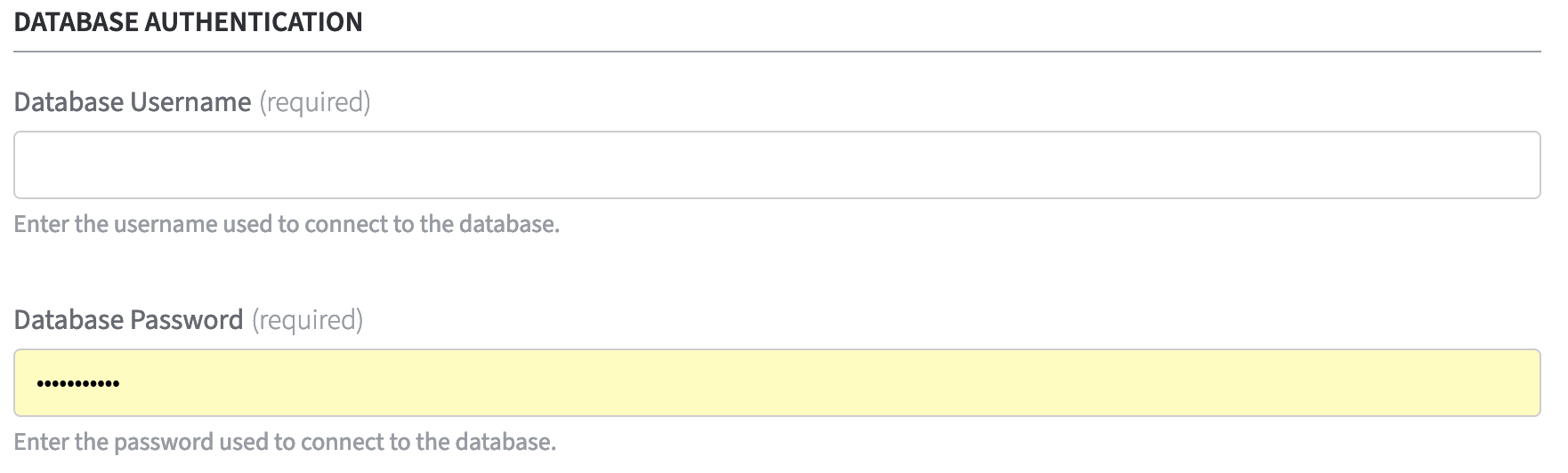 - Database Username (required): Enter the username used to connect to the database.