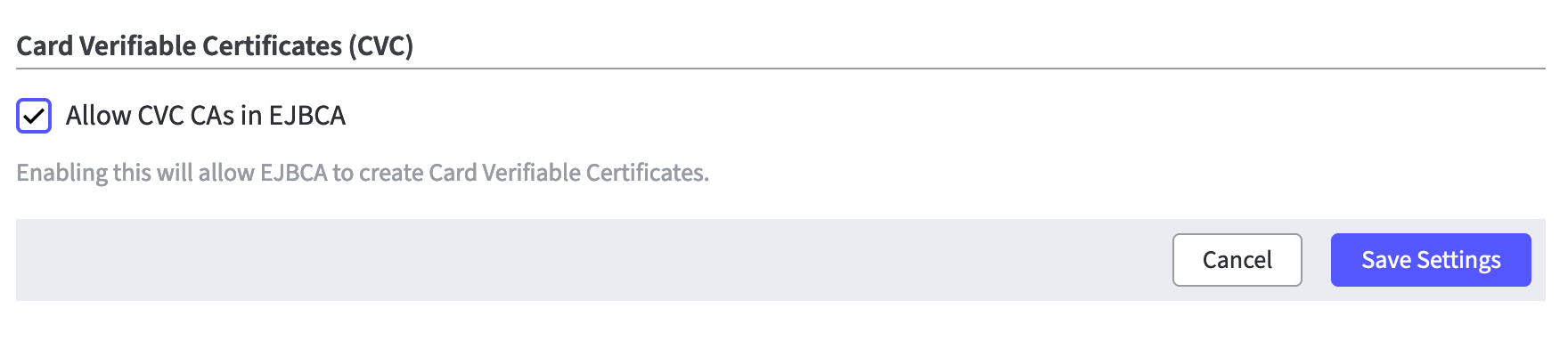 In the Additional Application Settings section go to the subsection Card Verifiable Certificates.