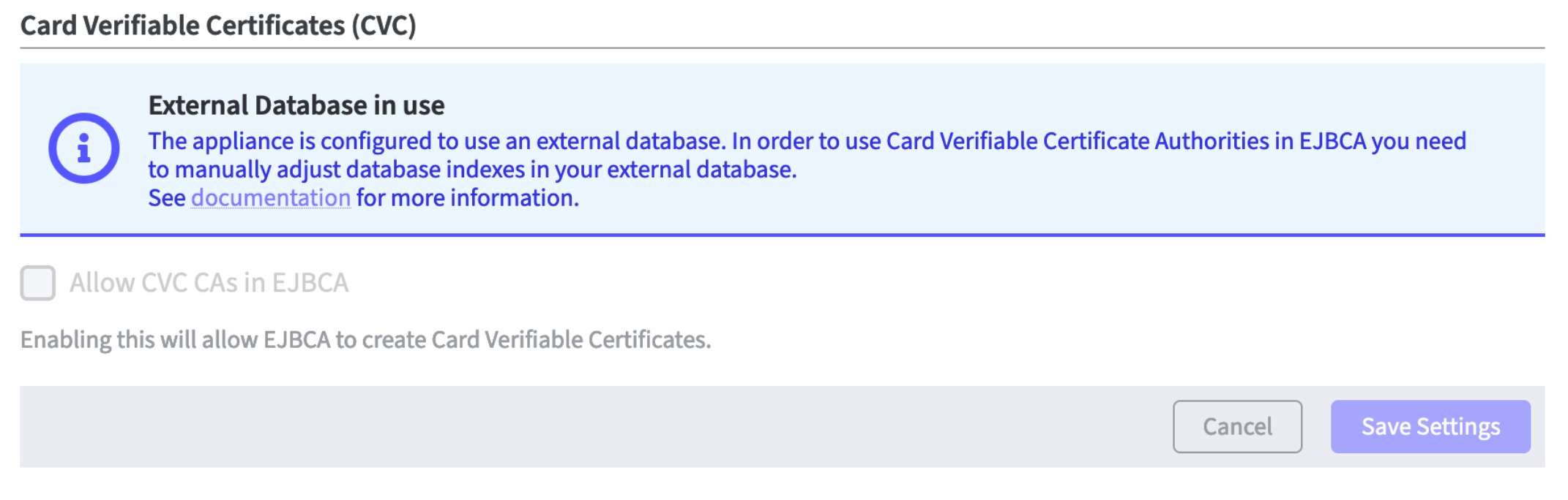 If an External Database is configured on the Software Appliance this function is not available. The CVC must be configured manually.