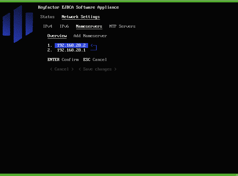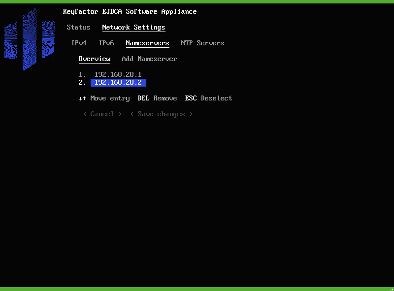 If you use your own nameservers on your network, you can register and manage them with the Software Appliance Terminal UI. Proceed as follows: