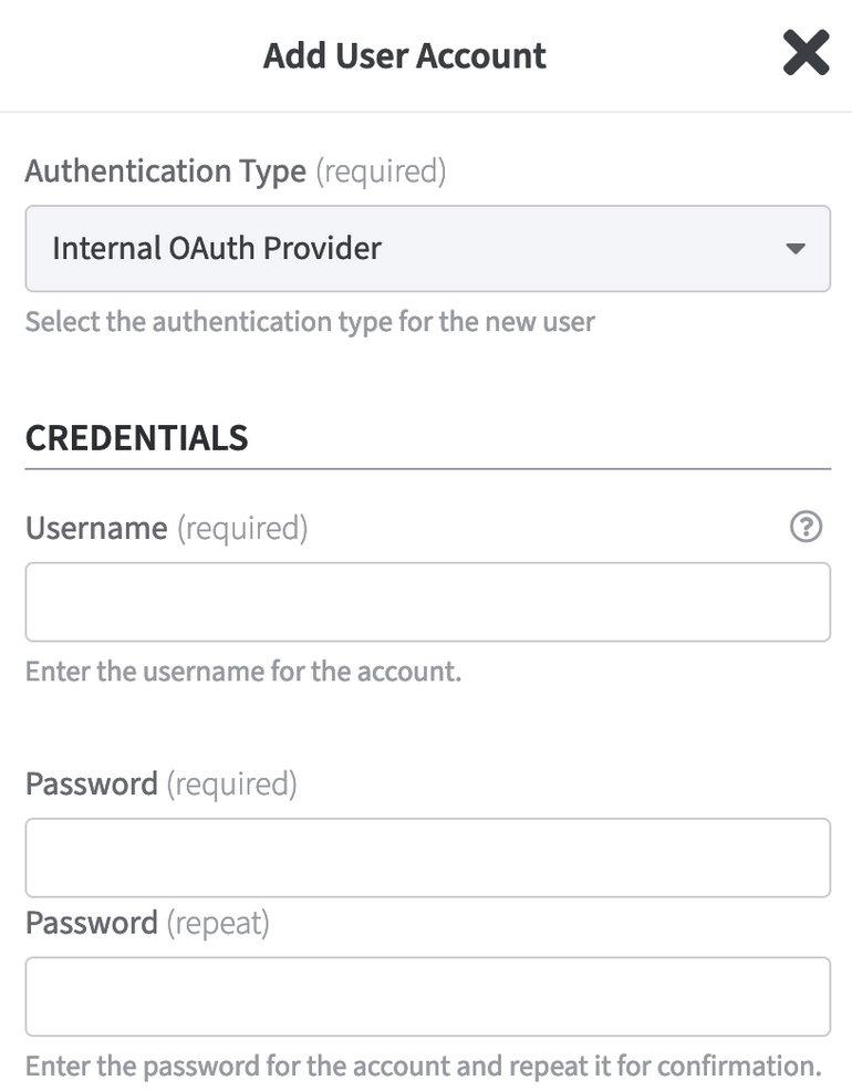 The following describes how to add an OAuth user account for the Software Appliance. Adding a new user account also allows you to remove the Initial OTP User to avoid security concerns.