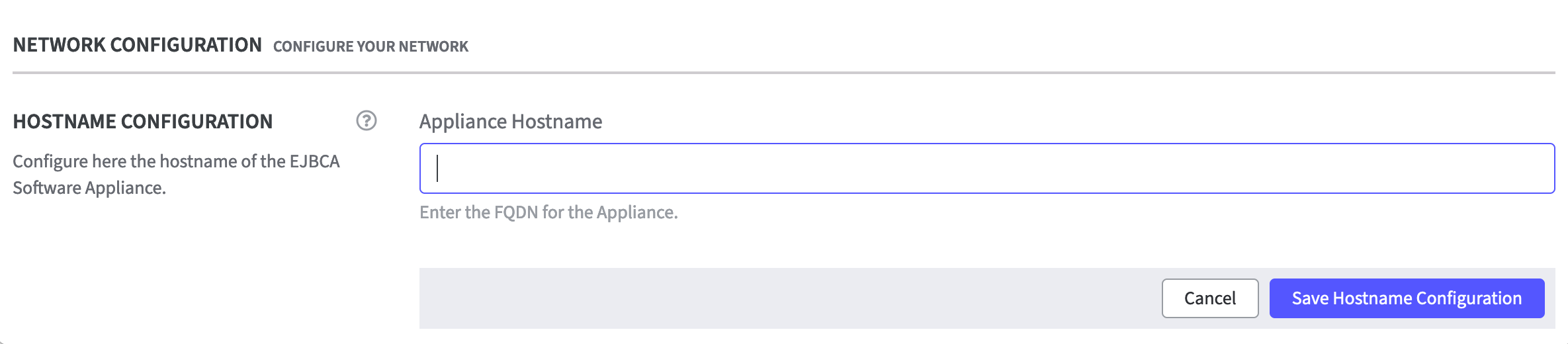 - In the section Hostname Configuration you are requested to add a valid FQDN (Fully Qualified Domain Name).