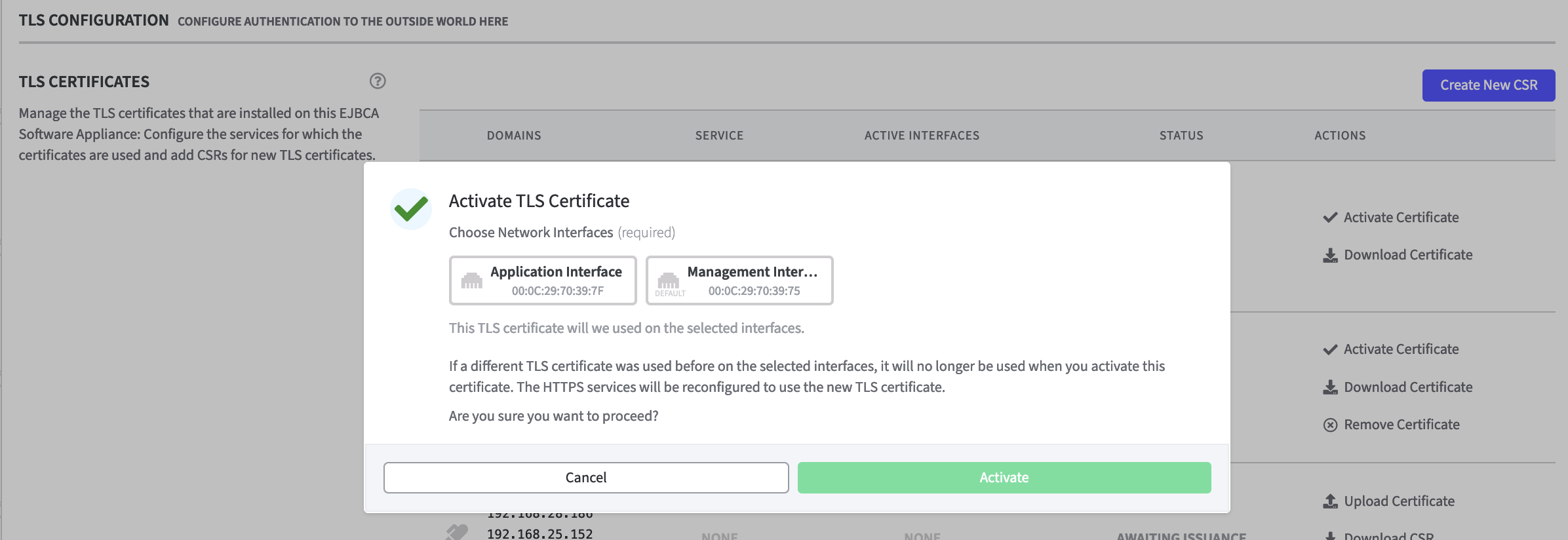 It is possible to select multiple network interfaces when activating a TLS certificate.
