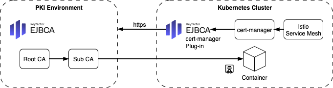 EJBCA PKI is designed to work with Kubernetes-native patterns and tools to overcome these challenges, delivering scalable, compliant, and automated solutions.