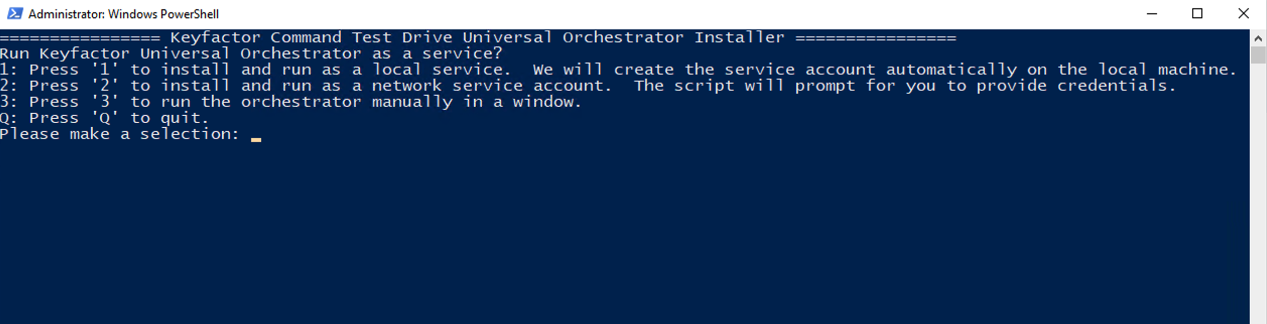 Run the Keyfactor Universal Orchestrator in a PowerShell window: This will mean that you need to manually start the Universal Orchestrator each time the system is logged off or rebooted.
