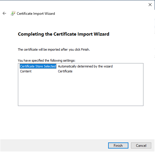 Leave the Certificate Store option set to Automatically select the certificate store and click Next.