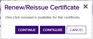 If the Universal Orchestrator is properly configured and working correctly, a dialog box will appear, indicating that one click renewal is available for the selected certificate. Click Continue.