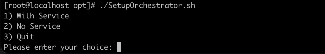 Selecting Option 1 will run the Universal Orchestrator as a service with credentials you provide. Once the installation steps outlined above are completed, it will stop and ask you to press enter before you need to provide the credentials. This can also be useful if you are installing the orchestrator on a domain joined system where local users will not be able to access domain resources.