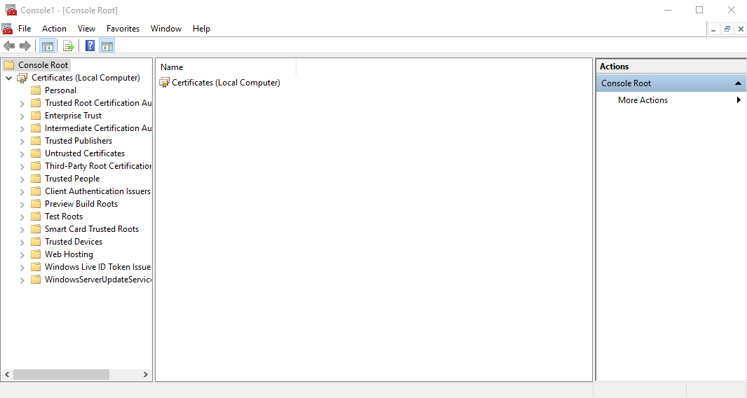 Launch MMC and load the Certificates snap-in. Select the option to manage the “Computer” account.