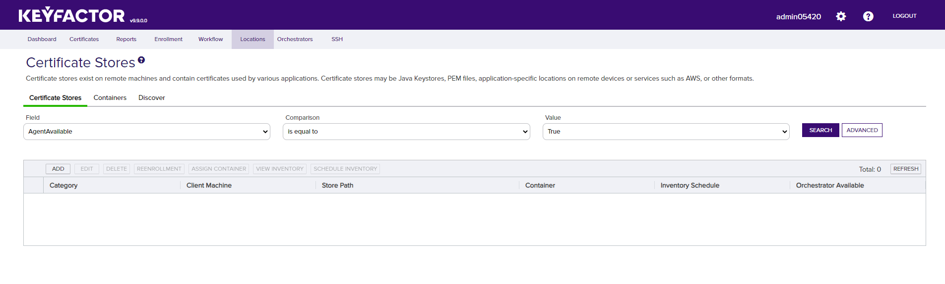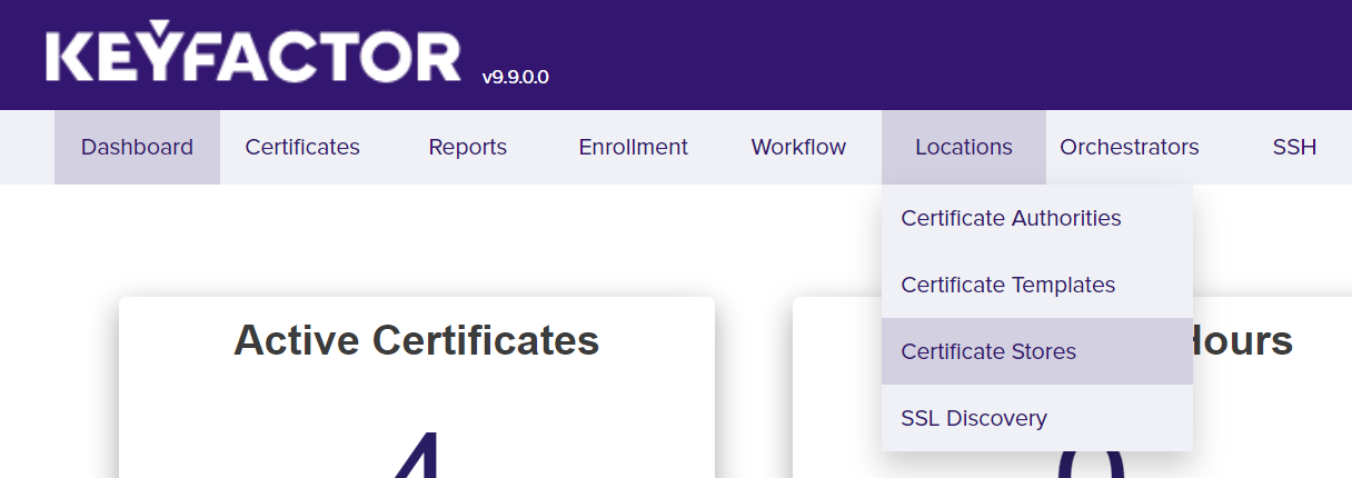 In the Keyfactor Command console, select Locations -> Certificate Stores from the navigation menu bar. Click Add.