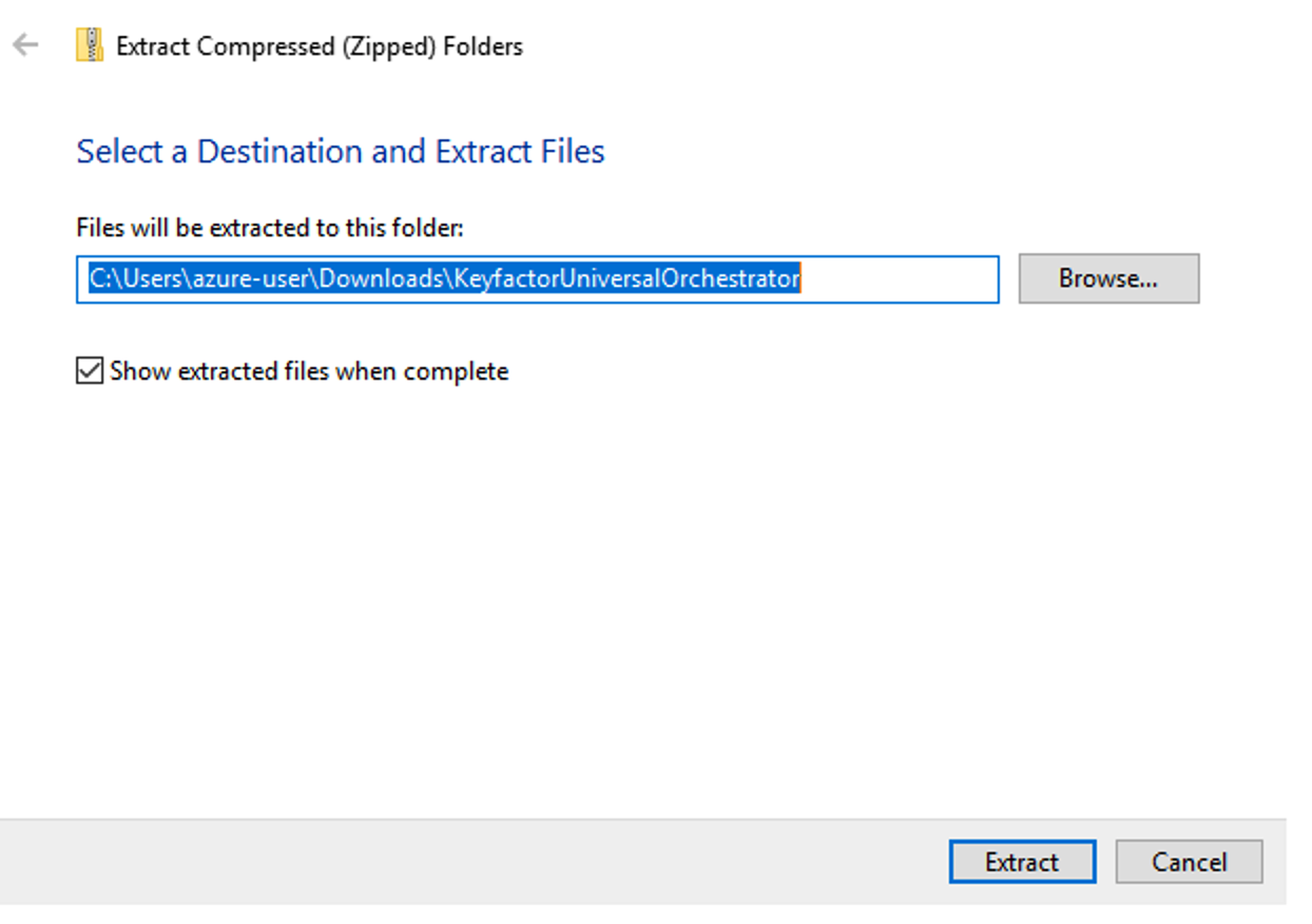 Clicking the Orchestrator Bundle link will prompt you for a password to download a zip file containing the Universal Orchestrator, a public certificate from the Test Drive instance (so it can make a TLS (Transport Layer Security) connection back to the Test Drive host), and an installer script. Enter the Test Drive username and password from the Test Drive interface in the Azure Portal.